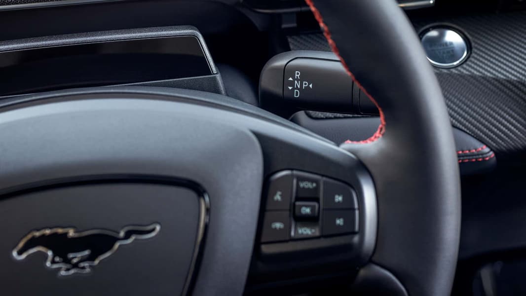 В стандартное оснащение Ford Mustang Mach-E 2025 включена вентиляция передних кресел, переключатель режимов движения перенесли с центральной консоли на подрулевой рычажок. Кроссовер получил три новых варианта дизайна колесных дисков и три новых цвета — песочный, синий металлик и пурпурный металлик.