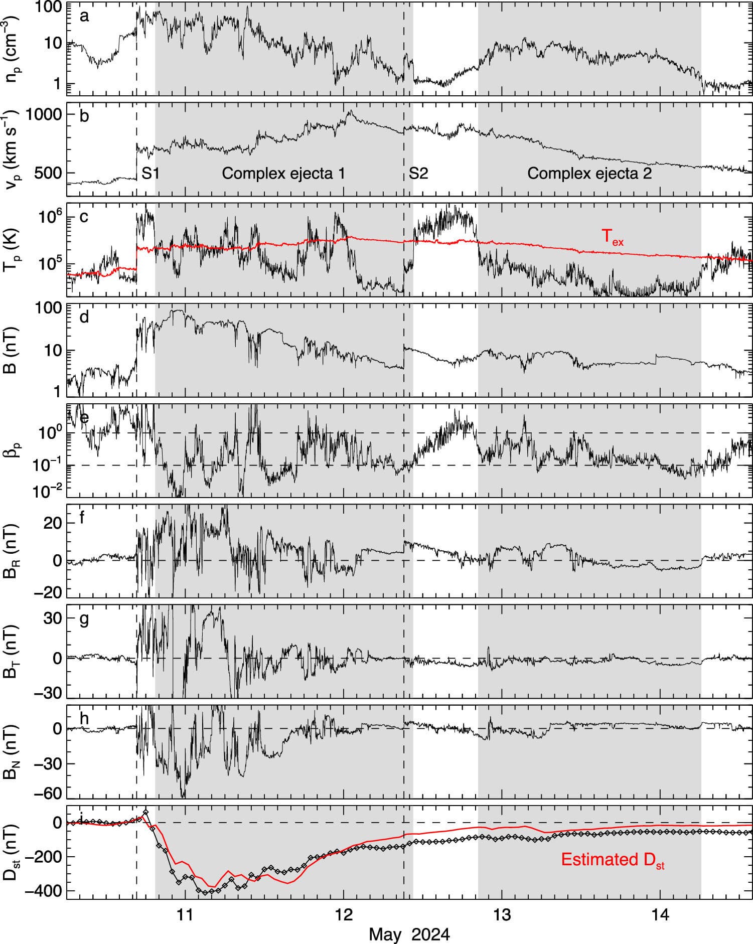 Геомагнитная буря в мае 2024 года имела Dst в -412 нТл (нанотесла), для сравнения, на поверхности магнитное поле Земли составляет около 45 000 нТл. Солнечная буря «Хэллоуин 2023» года имела Dst около -401 нТл, а событие Кэррингтона, по оценкам, имеет Dst в диапазоне -850 нТл.