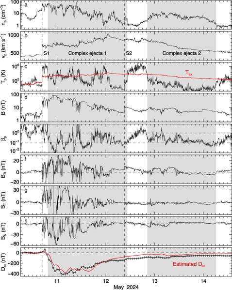 Первые сложные выбросы в мае 2024 года показали «значительные различия в магнитном поле и связанной с ним геоэффективности между Землёй и STEREO A», написала группа, несмотря на лишь промежуточное расстояние между солнечными пятнами. И два разных случая сложных выбросов имели контрастную геоэффективность на Земле, что, как заключает группа, «в значительной степени обусловлено различными конфигурациями магнитного поля в пределах одной и той же активной области».