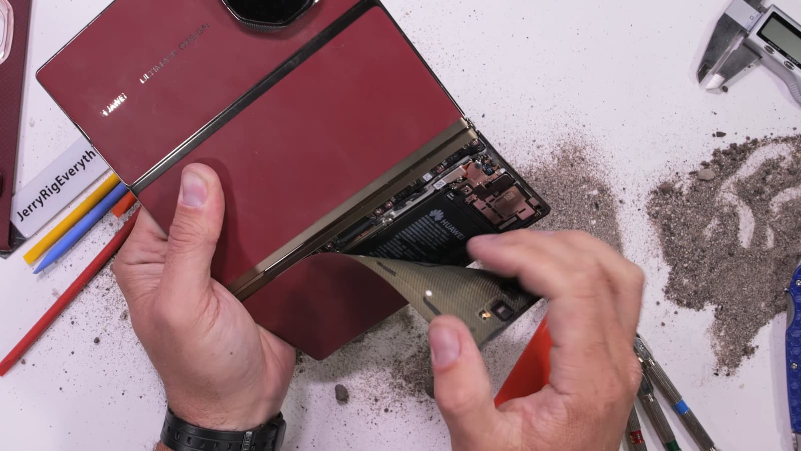 Блогер JerryRigEverything добрался до новейшего уникального складного смартфона Huawei Mate XT, чтобы проверить его на прочность.