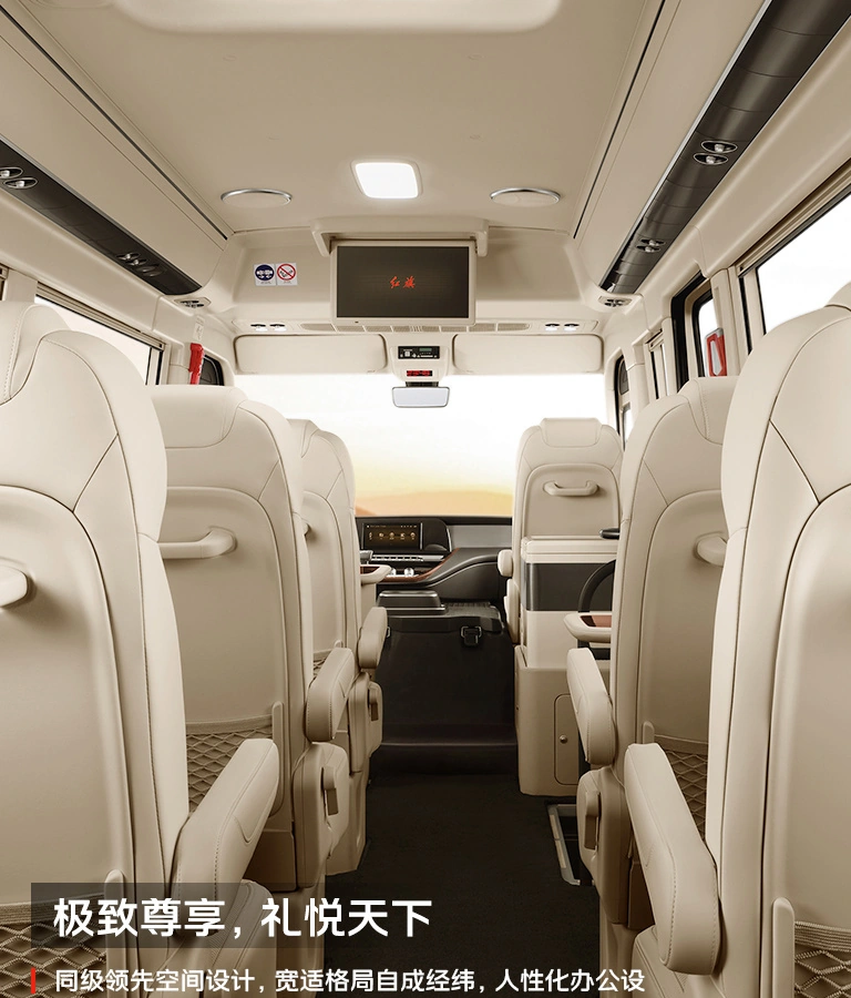 Автомобиль Hongqi Guoyue был запущен в марте этого года. Он доступен в трех версиях: бизнес-версия (20 мест, 23 места), роскошная версия (17 мест, 19 мест) и флагманская версия (17 мест).