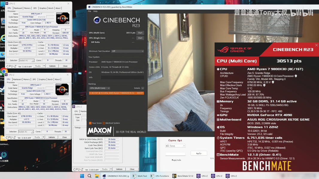 В эксперименте использовалась материнская плата Asus ROG Crosshair X670E Gene, оперативная память DDR5-6000 (CL30) объемом 32 ГБ и ускоритель Nvidia GeForce RTX 4090. Столь существенный разгон обеспечил 30 513 баллов в бенчмарке Cinebench R23, правда, пиковое потребление составило 200 Вт. Но в играх ситуация куда более интересная.