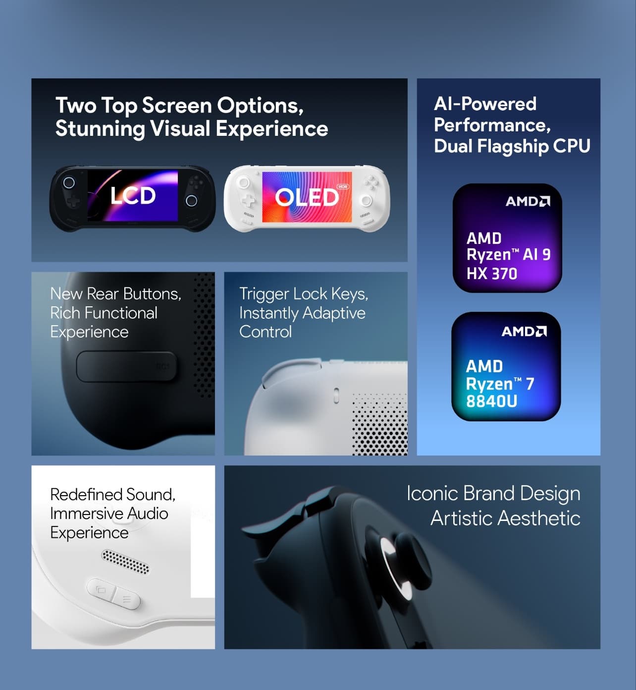Если точнее, она предлагает Ryzen AI 9 HX 370, но не только его. Базовые варианты опираются на старый добрый Ryzen 7 8840U. Первый процессор, конечно, заметно производительнее, но и второй для подобных устройств очень неплох.