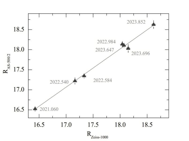 Группа астрономов под руководством Валерия Власюка из САО проанализировала данные, охватывающие почти три десятилетия наблюдений, чтобы получить более полное представление о долговременной изменчивости AO 0235+164. Исследование выявило временную задержку, которая уменьшается с частотой в диапазоне от 0 до 450 дней. Эта связь лучше всего описывается линейной аппроксимацией с отрицательным наклоном −10 дней/ГГц для пар большинства радиочастот по сравнению с 230 ГГц, 37 ГГц, R-диапазоном и гамма-лучами.