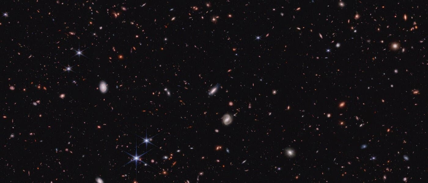 Космический телескоп «Джеймс Уэбб» (JWST) продолжает удивлять астрономов, на этот раз бросая вызов стандартной модели формирования галактик в ранней Вселенной. Согласно популярной гипотезе, тёмная материя помогла самым ранним звёздам и галактикам объединиться, что должно было привести к обнаружению слабых сигналов от небольших примитивных галактик. Однако данные JWST показывают, что самые старые галактики большие и яркие, что согласуется с альтернативной теорией гравитации, известной как MOND (Modified Newtonian Dynamics).