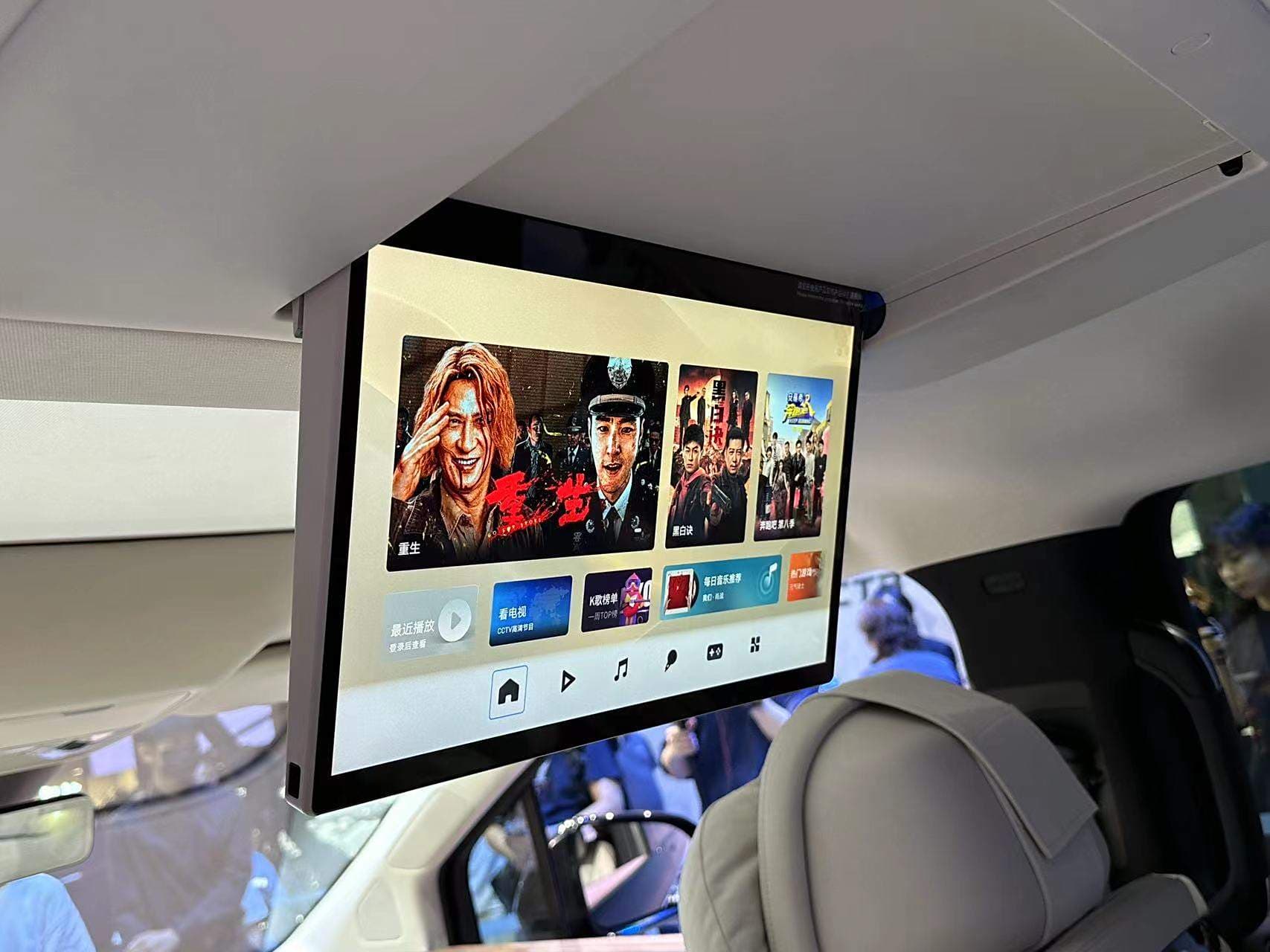 Габариты 7-местного автомобиля — 5145 х 1970 х 1805 мм при длине колесной базы 3045 мм. Боковые двери открываются и закрываются при помощи электроприводов. Кресла первого и второго рядов регулируются тоже при помощи электроприводов, есть подогрев и вентиляция, а на втором ряду еще и массаж. На передней панели — три экрана, на потолке закреплен еще один дисплей — для задних пассажиров. Третий ряд представлен диваном, у которого тоже есть подогрев и вентиляция. К тому же его можно сдвигать на 10 см в продольном направлении.
