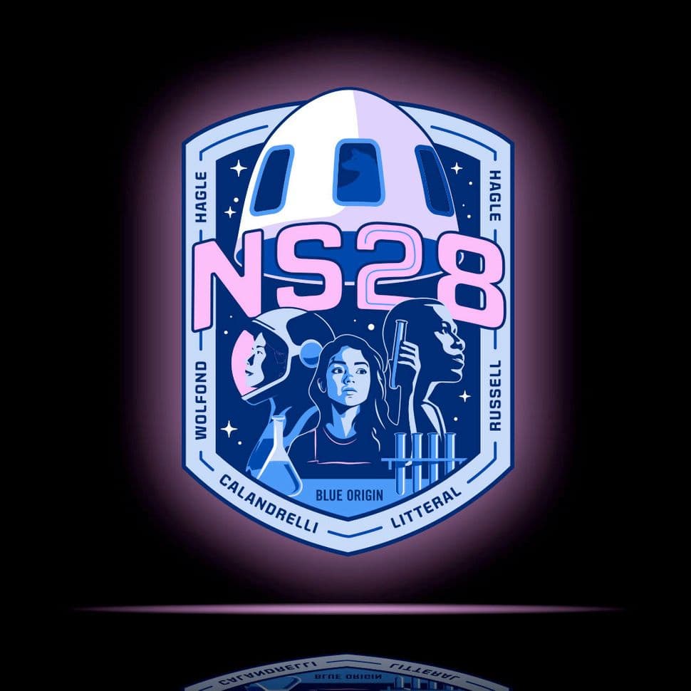 Экипаж NS-28 состоял из шести человек, включая Марка и Шэрон Хейгл, которые ранее летали в миссии NS-20 в марте 2022 года. Также на борту была Эмили Каландрелли, автор, ведущая телешоу и научный популяризатор. В сообщении в социальных сетях она сообщила, что станет 100-й женщиной, которая полетит в космос. Однако, в это число входят девять женщин, которые летали в суборбитальных полётах Virgin Galactic, которые преодолели высоту в 80,5 км, но не достигли 100-километровой линии Кармана, используемой Blue Origin в качестве границы космического пространства. Blue Origin не упомянула эту веху в своей веб-трансляции запуска, обсуждая Каландрелли.