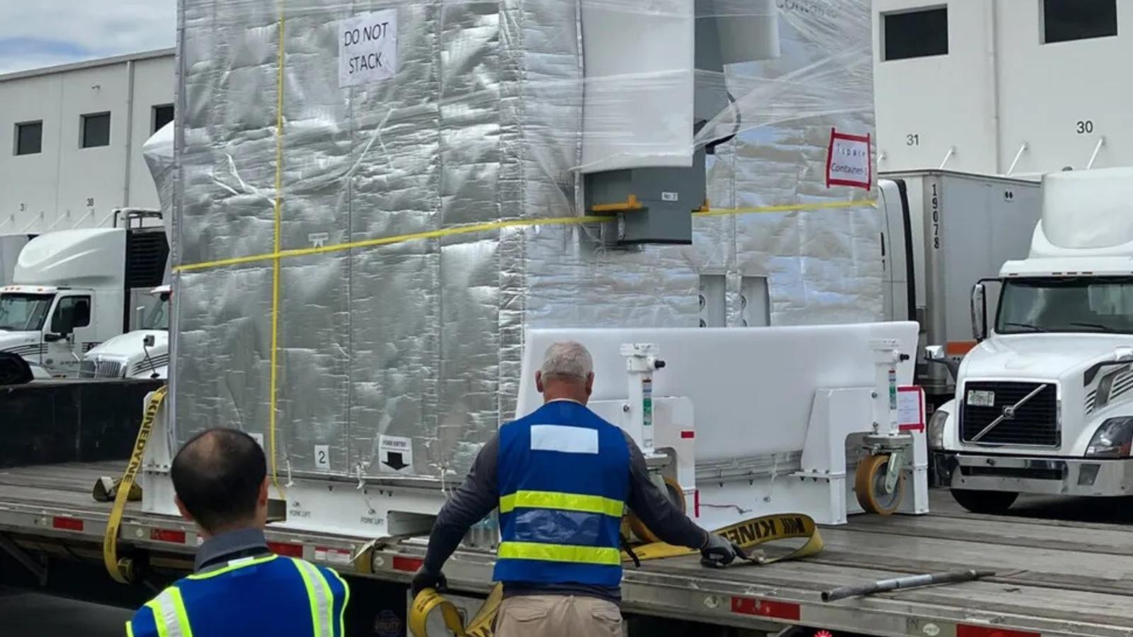Новый посадочный модуль, созданный на базе предыдущей платформы Hakuto-R, но с обновленным программным обеспечением, был доставлен коммерческим грузовым самолетом с объекта Японского агентства аэрокосмических исследований в Цукубе, Япония, после испытаний.
