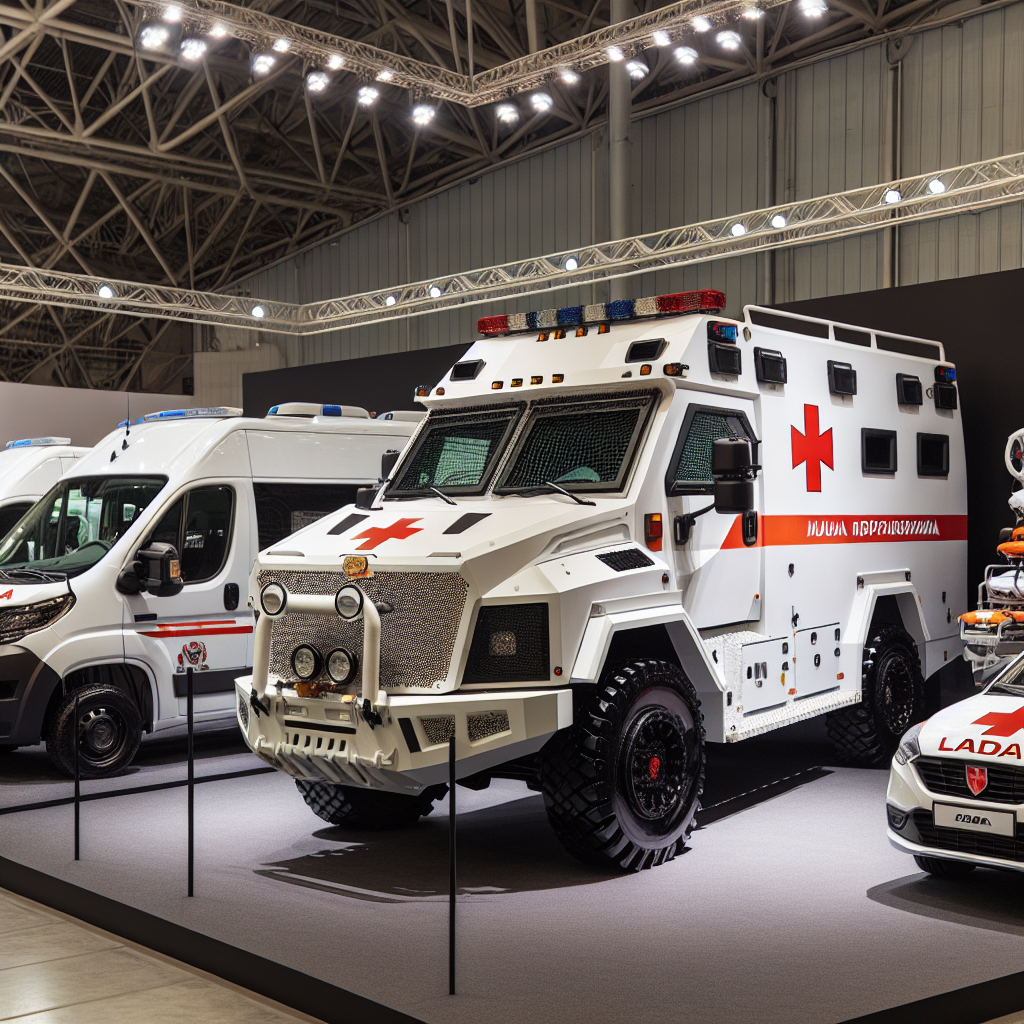 «Промтех» представил несколько медицинских машин, включая модификации известных моделей Largus и Vesta, а также новый бронированный микроавтобус на базе российского шасси «Капитан».