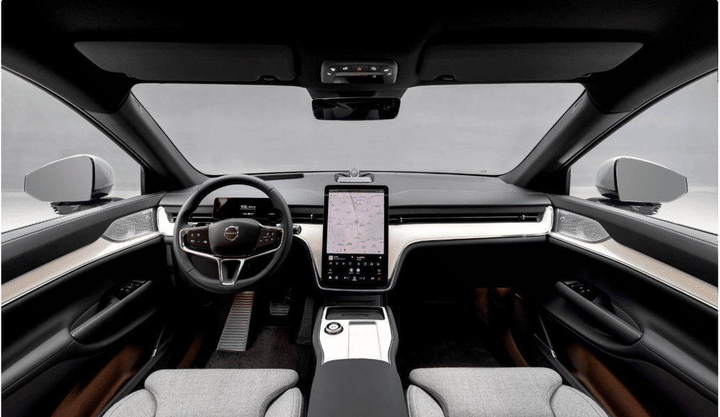 В салоне установлены 14,5-дюймовый вертикальный центральный экран управления и ЖК-панель приборов. Предусмотрен обогрев/вентиляция передних сидений, система определения качества воздуха и расширенные возможности помощи водителю уровня L2.