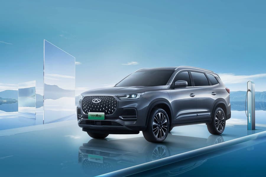 Гибридный кроссовер Chery Tiggo 8 Pro Plug-in hybrid, оснащённый 1,5-литровым бензиновым двигателем и двумя электромоторами, развивает мощность в 235 л.с.