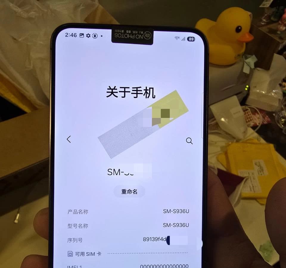 Аппарат в черном цвете и с серебристой боковой рамкой. Судя по наклейке, блок основной камеры не функционирует. Обозначение SM-936U говорит о том, что на фото засняли версию для рынка США. Увы, данных о том, какая в устройстве используется однокристальная система, нет.