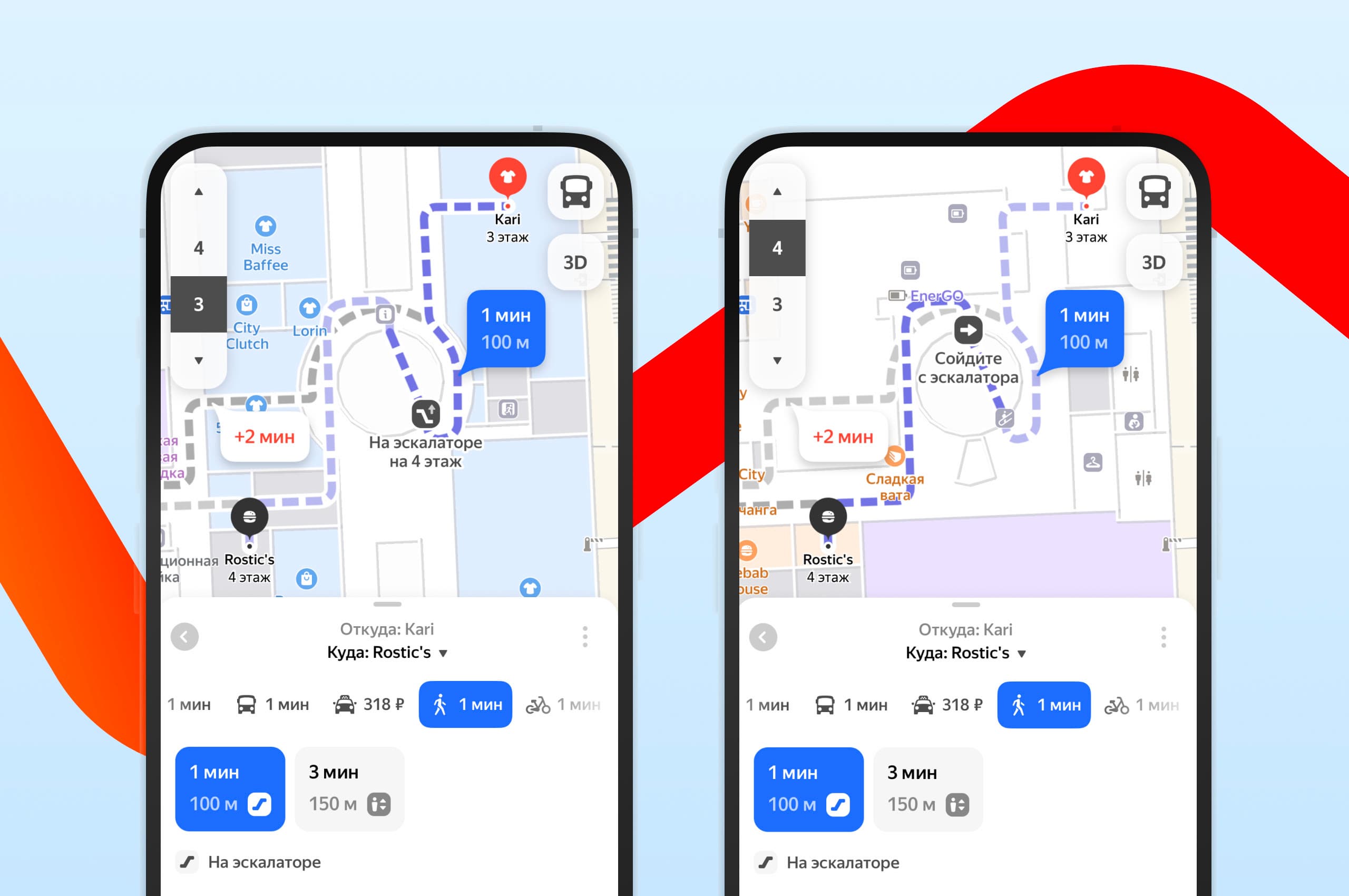 Маршруты можно строить между объектами внутри здания, а также из любой точки города: например, Карты построят маршрут на автобусе до торгового центра, затем подскажут удобный вход и как добраться до конкретного магазина. Как и с обычной навигацией, Карты могут предложить несколько вариантов пути.