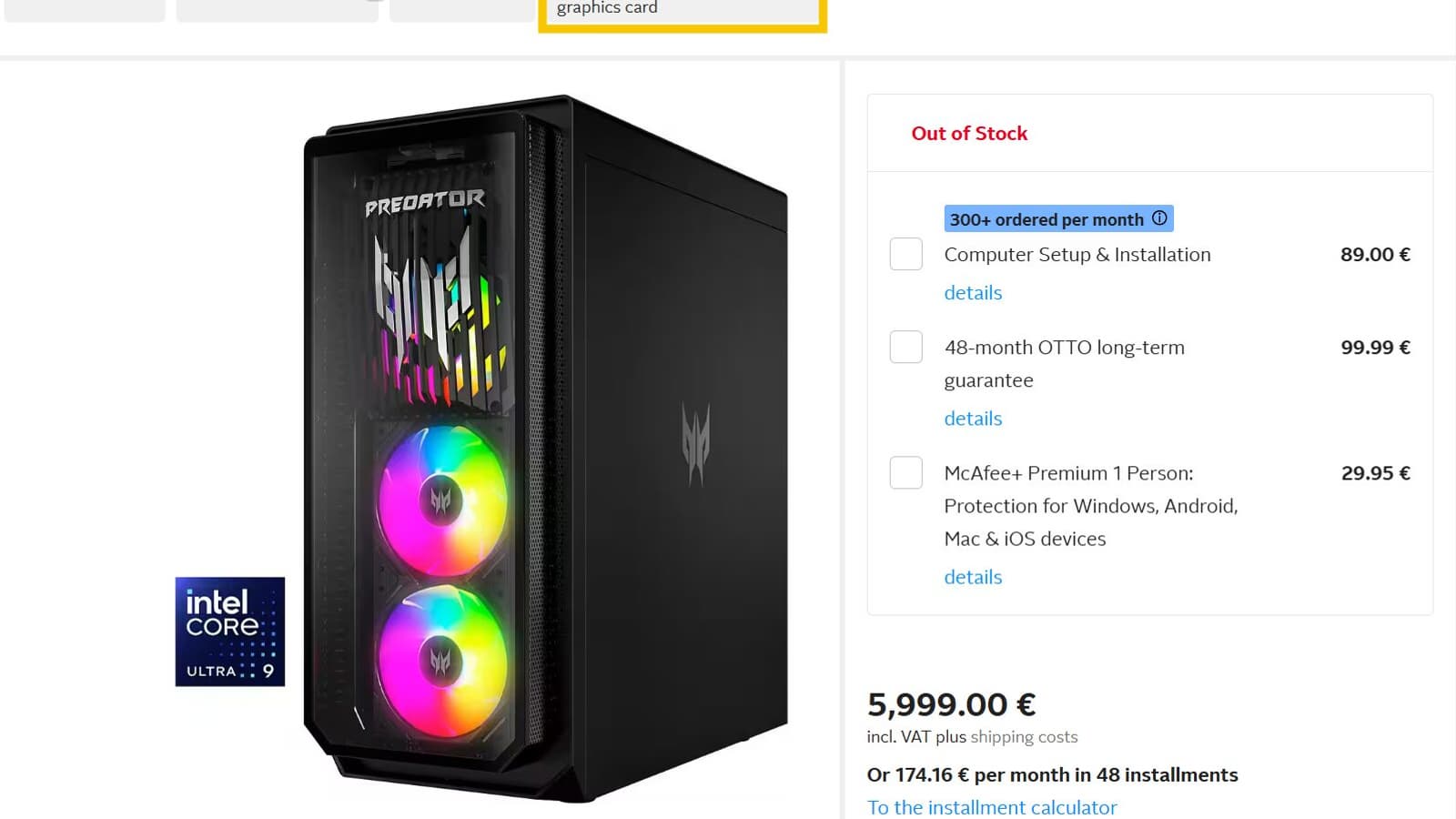 Модель с RTX 5090, 128 ГБ ОЗУ, SSD объёмом 2 ТБ и CPU Core Ultra 9 285K оценивается уже в 5000 евро.