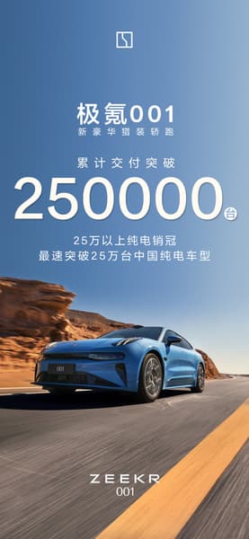 Принадлежащий Geely бренд Zeekr официально объявил о том, что кумулятивные поставки электромобиля Zeekr 001 в Китае превысили отметку в 250 тыс. единиц. В самой компании говорят, что Zeekr 001 достиг этого этапа раньше других чисто электрических моделей, что говорит о высоком спросе на эту модель на домашнем рынке.