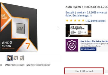 Ryzen 7 9800X3D продаётся вдвое лучше всех остальных Ryzen 9000 вместе взятых. Как минимум в крупнейшей немецкой сети Mindfactory