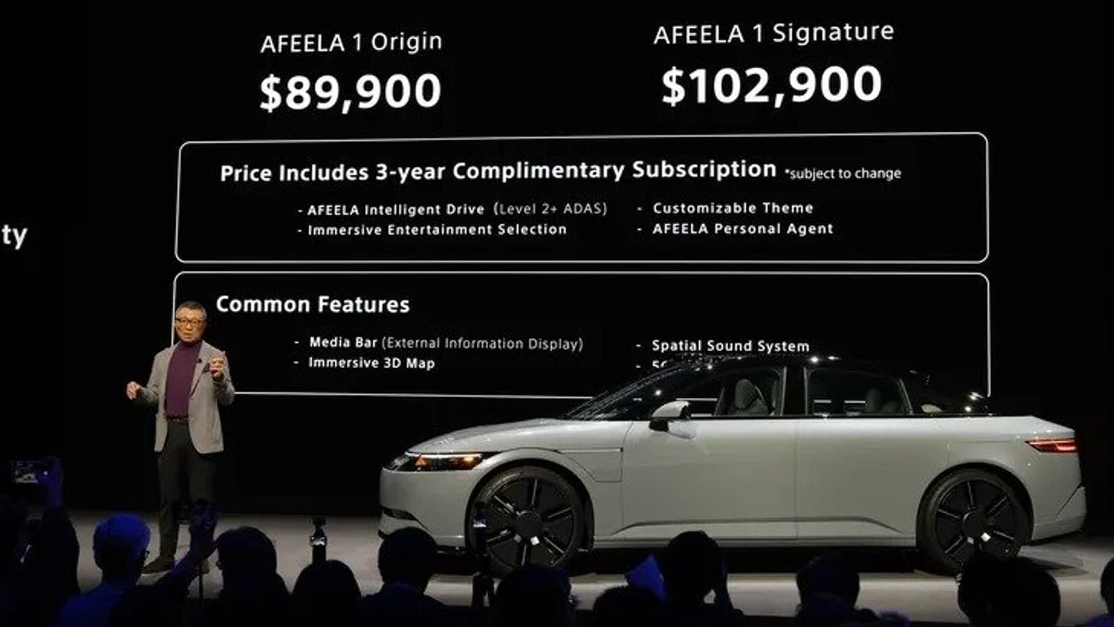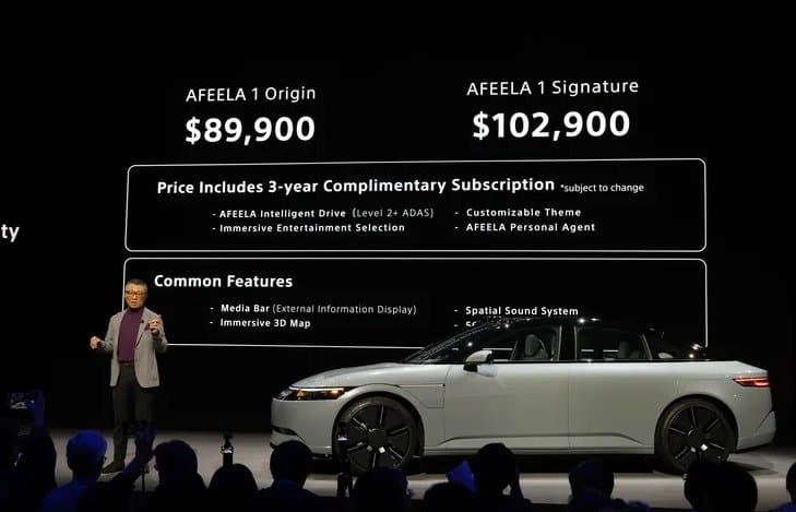 Автомобиль Afeela 1 будет представлен в двух версиях: Afeela 1 Origin и Afeela 1 Signature по цене 89 900 и 109 900 долларов соответственно.