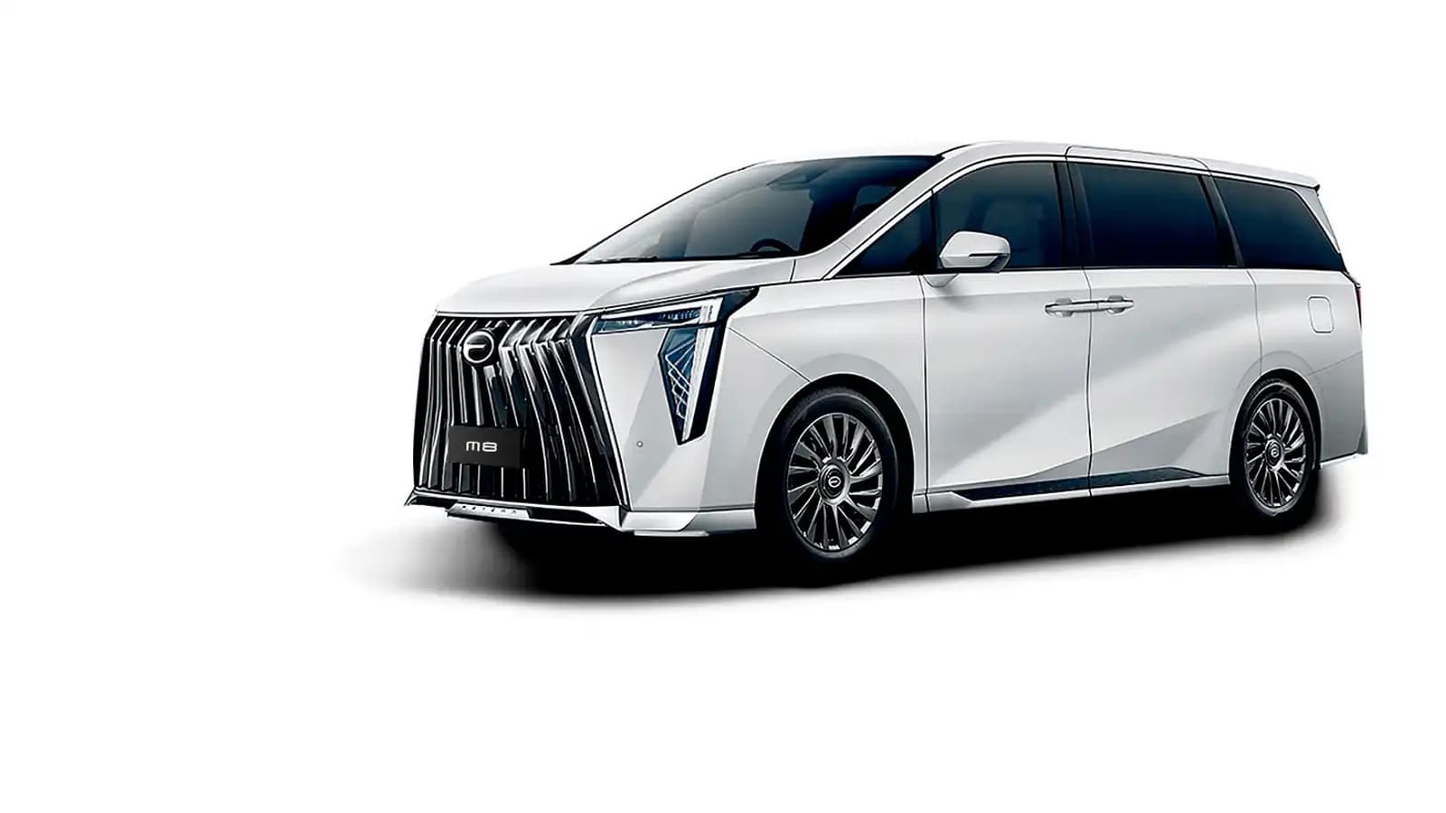 Заменитель Toyota Alphard получил кузов с габаритами 5212 х 1893 х 1823 мм при колёсной базе 3070 мм. В оснащение входят уникальная Г-образная оптика с характерными диодными линиями и массивная радиаторная решётка в стиле водопада. Дизайн передней части M8 в GAC называют «Пробуждающийся лев».