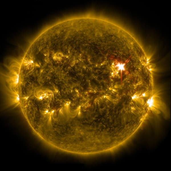 Солнечные вспышки, отображаемые на визуализации синими окружностями, представляют собой всплески высокоэнергетического излучения, регистрируемые прибором STIX в рентгеновском диапазоне. Эти вспышки возникают при внезапном высвобождении энергии из магнитных полей, обычно располагающихся над солнечными пятнами. Размер каждой окружности соответствует интенсивности вспышки – чем сильнее вспышка, тем больше рентгеновского излучения она производит. В звуковом сопровождении вспышки представлены металлическими звуками, резкость которых соответствует энергетическому уровню солнечной вспышки.
