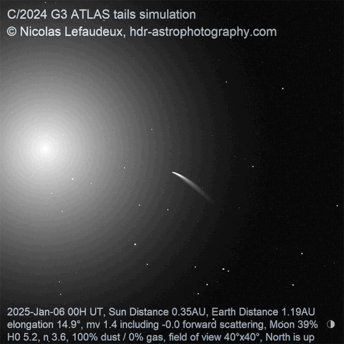 Предварительные расчёты показали, что в середине января 2025 года комета пройдёт исключительно близко к Солнцу — на расстоянии менее 14 миллионов километров, что составляет примерно четверть расстояния от Солнца до Меркурия. Первоначально считалось, что G3 ATLAS — новая комета из облака Оорта, скопления ледяных объектов на окраине Солнечной системы. Однако позже выяснилось, что она уже совершала подобное путешествие примерно 160 000 лет назад, что повышает шансы на её сохранение при близком прохождении Солнца.