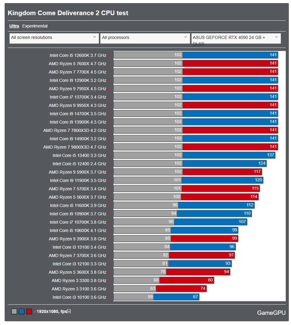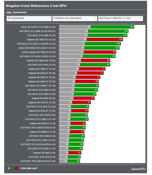 Что касается процессоров, тут ситуация двоякая. С одной стороны, есть целая когорта CPU, которые выдают одинаковый показатель, то есть игра упирается в видеокарту. Тут и Ryzen 5 7600X, и Core i9, и Ryzen 7 9800X3D. С другой, выбор, к примеру, Ryzen 5 3600X лишит ПК примерно 30% производительности. То есть не обязательно иметь очень мощный игровой CPU, но и ограничиться совсем уж старыми моделями не выйдет. Как минимум в Full HD.