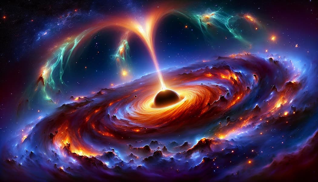 В 60 миллионах световых лет от Земли, в созвездии Кита, расположена галактика NGC 1052, в центре которой находится сверхмассивная чёрная дыра массой более 150 миллионов солнц. Особый интерес учёных вызывают исходящие из неё биполярные джеты — струи вещества, движущиеся почти со скоростью света.