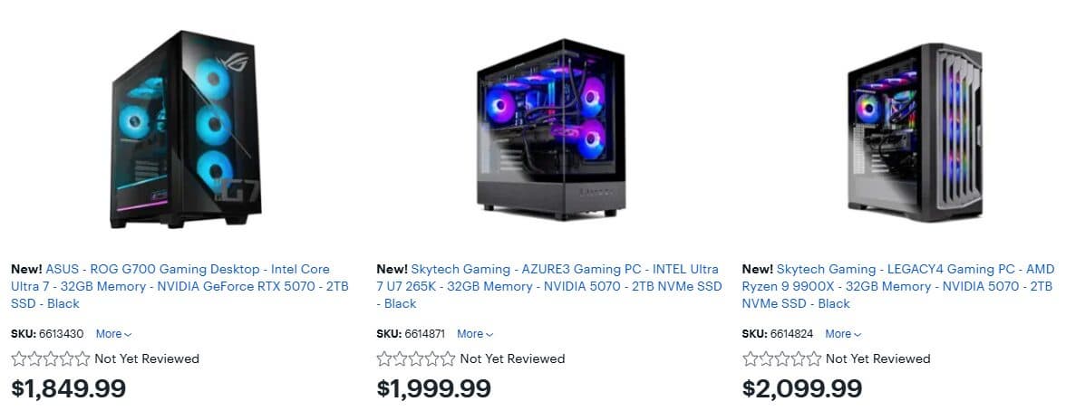 Пока что самый доступный компьютер с RTX 5070 имеет цену в 1850 долларов. Это немало, учитывая, что сама карта стоит от 550 долларов, но тут стоит сказать, что это ПК Asus ROG G700, так что это явно будет далеко не самый доступный вариант с оговариваемой видеокартой. Да и процессор тут — Core Ultra 7 нового поколения.