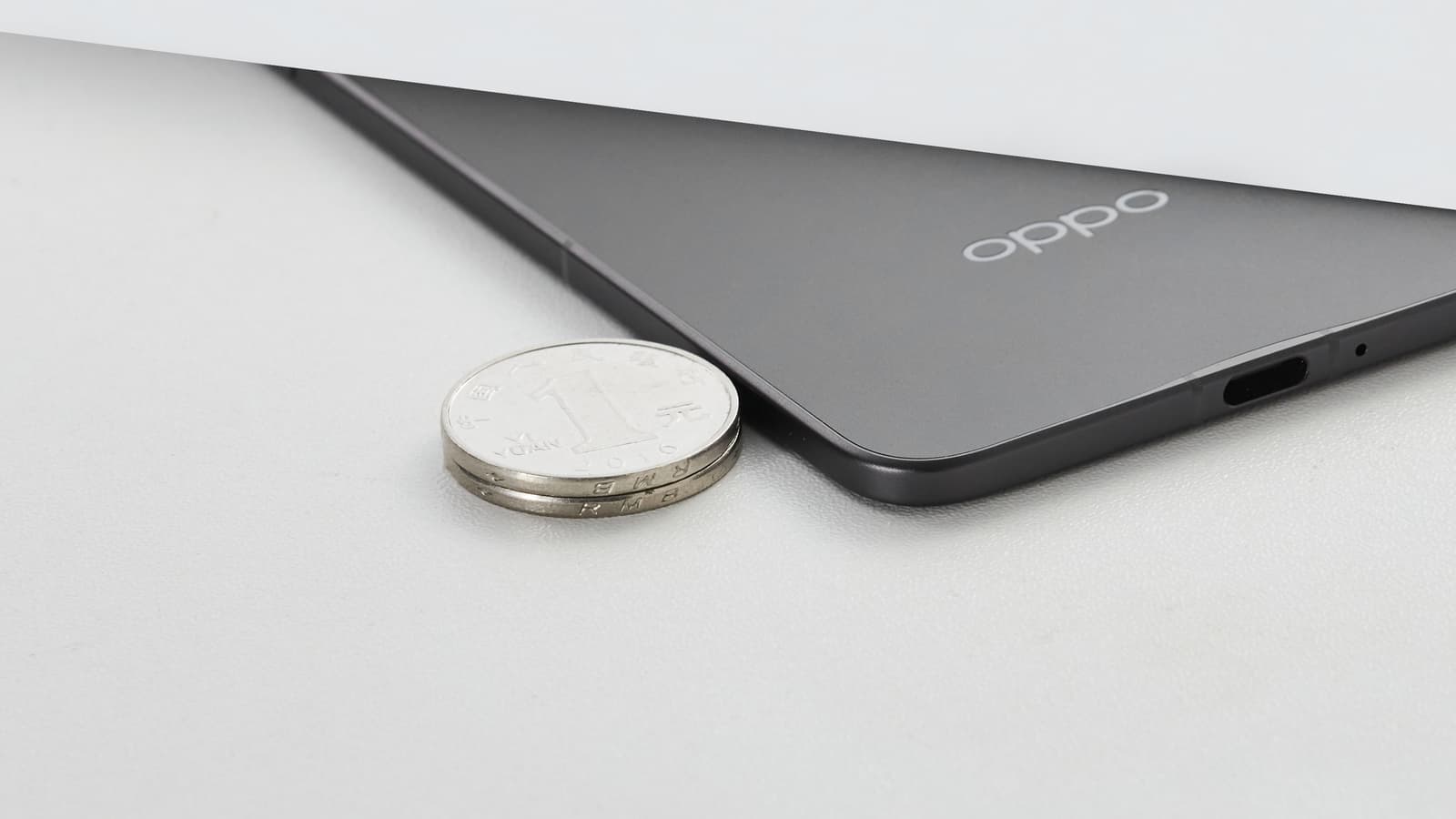 Ранее было объявлено, что Find N5 будет тоньше карандаша. Теперь же нам показали сравнение Oppo Find N5 с двумя монетами номиналом 1 юань и с 4 пластиковыми карточками.