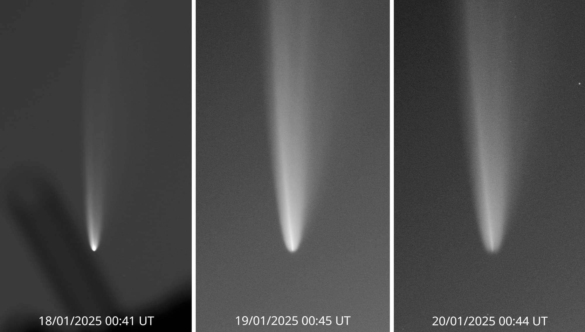 Ядро кометы ATLAS (C/2024 G3) смогло пережить экстремальное сближение с Солнцем, но ненадолго. Венгерский астроном Лионель Майзик первым сообщил о драматических изменениях в комете между 18 и 19 января. Яркое ядро кометы быстро стало более диффузным, что, основываясь на прошлых наблюдениях разрушающихся комет, является верным признаком распада. Его серия снимков, сделанных дистанционно из Чили, чётко показывает эту драматическую трансформацию, которую позже подтвердили австралийские наблюдатели.