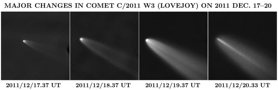 Астрономы-любители дали таким кометам особое название – одной ночью комета выглядит привычно, с ярким компактным ядром и протяжённым хвостом. На следующую ночь ядро становится мягким и диффузным, словно растворяясь на глазах. Спустя дни комета сохраняет свою форму, несмотря на катастрофу. Самый известный пример – комета Лавджоя (C/2011 W3). После исключительно близкого прохождения перигелия (140 000 километров) 16 декабря 2011 года ядро изначально уцелело, но затем подверглось катастрофическому распаду всего через несколько дней.