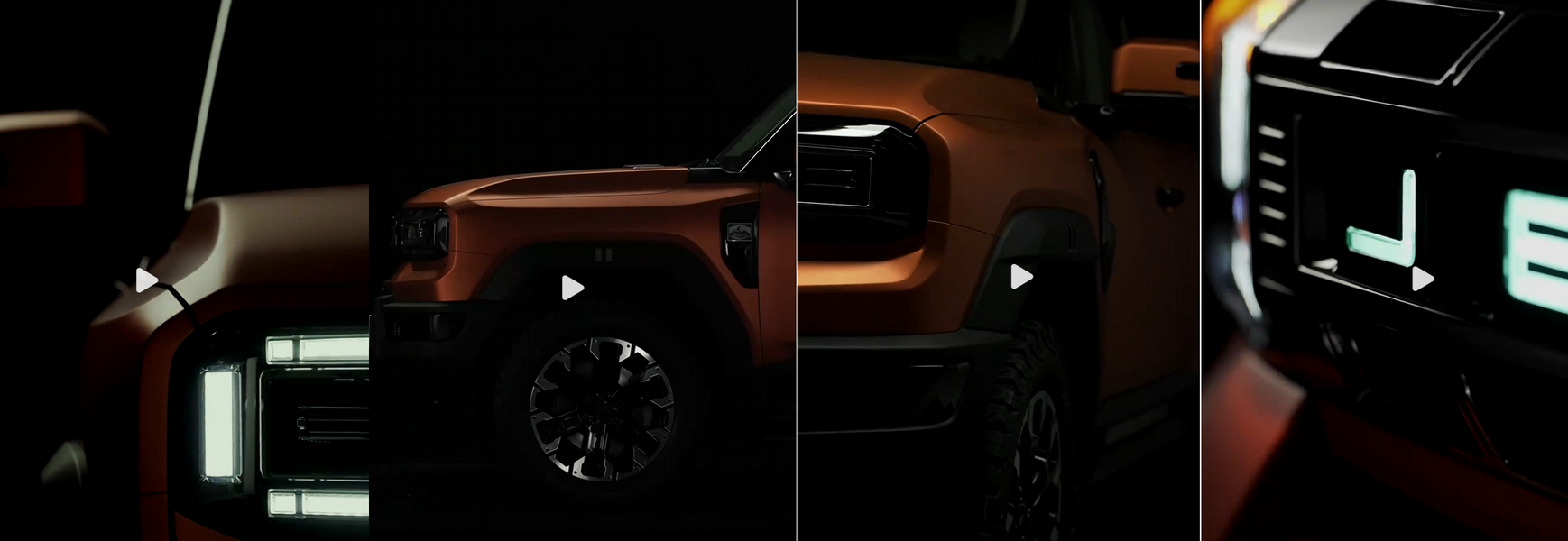 В видеоролике показан дизайн внедорожника с прямыми линиями, квадратными фарами и лидаром на крыше, что намекает на поддержку умных технологий и автопилота.