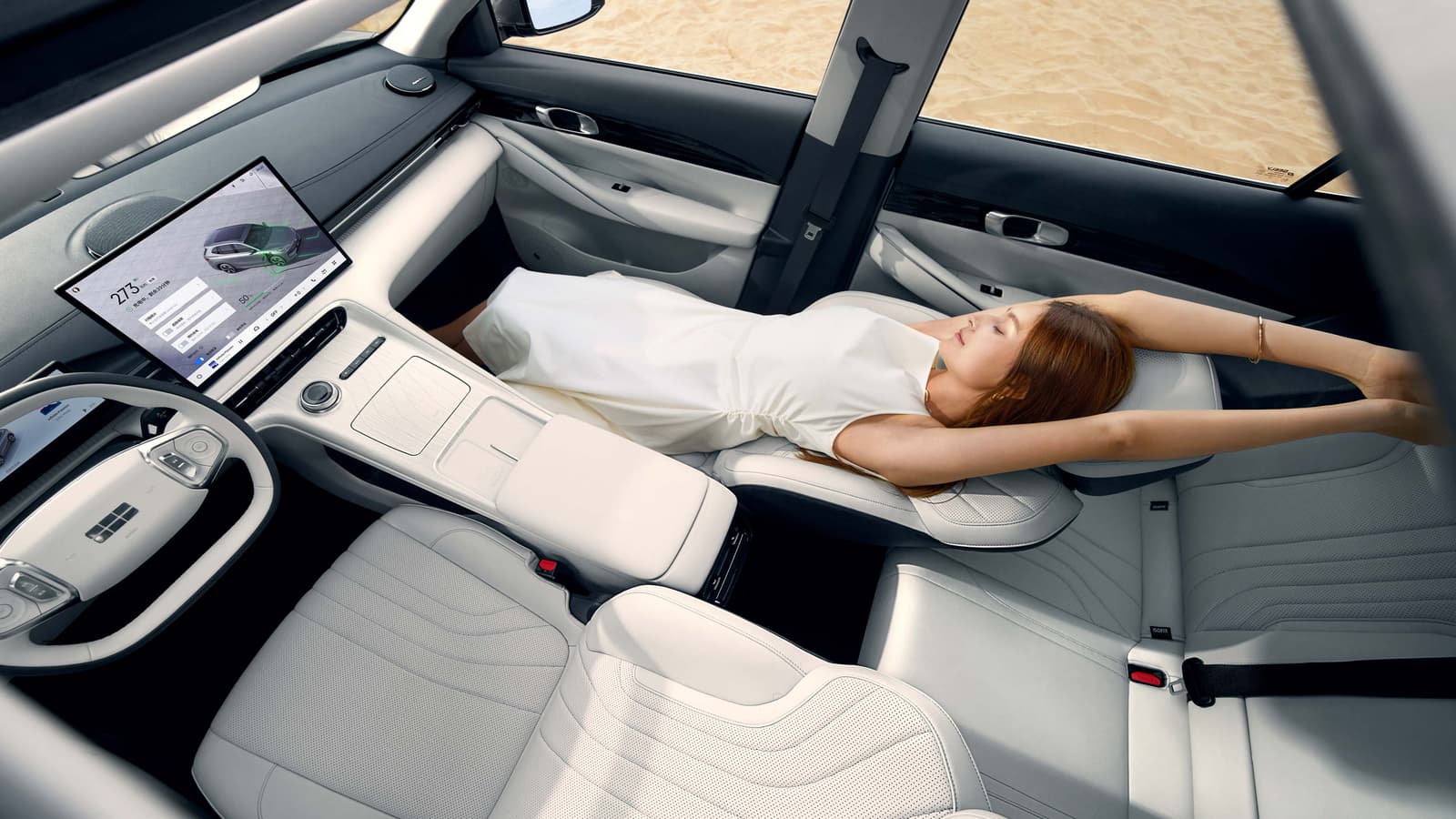 Салон оснащён рулевым колесом со срезанной нижней частью, проекционным дисплеем, полностью жидкокристаллической приборной панелью и большим центральным экраном управления. Компьютерная система построена на 7-нм чипе Dragon Eagle-1. Поддерживаются OTA-обновления. В оснащение входят беспроводная зарядка мобильного телефона, обогрев/вентиляция/8-точечный массаж передних сидений и аудиосистема с 16 динамиками.