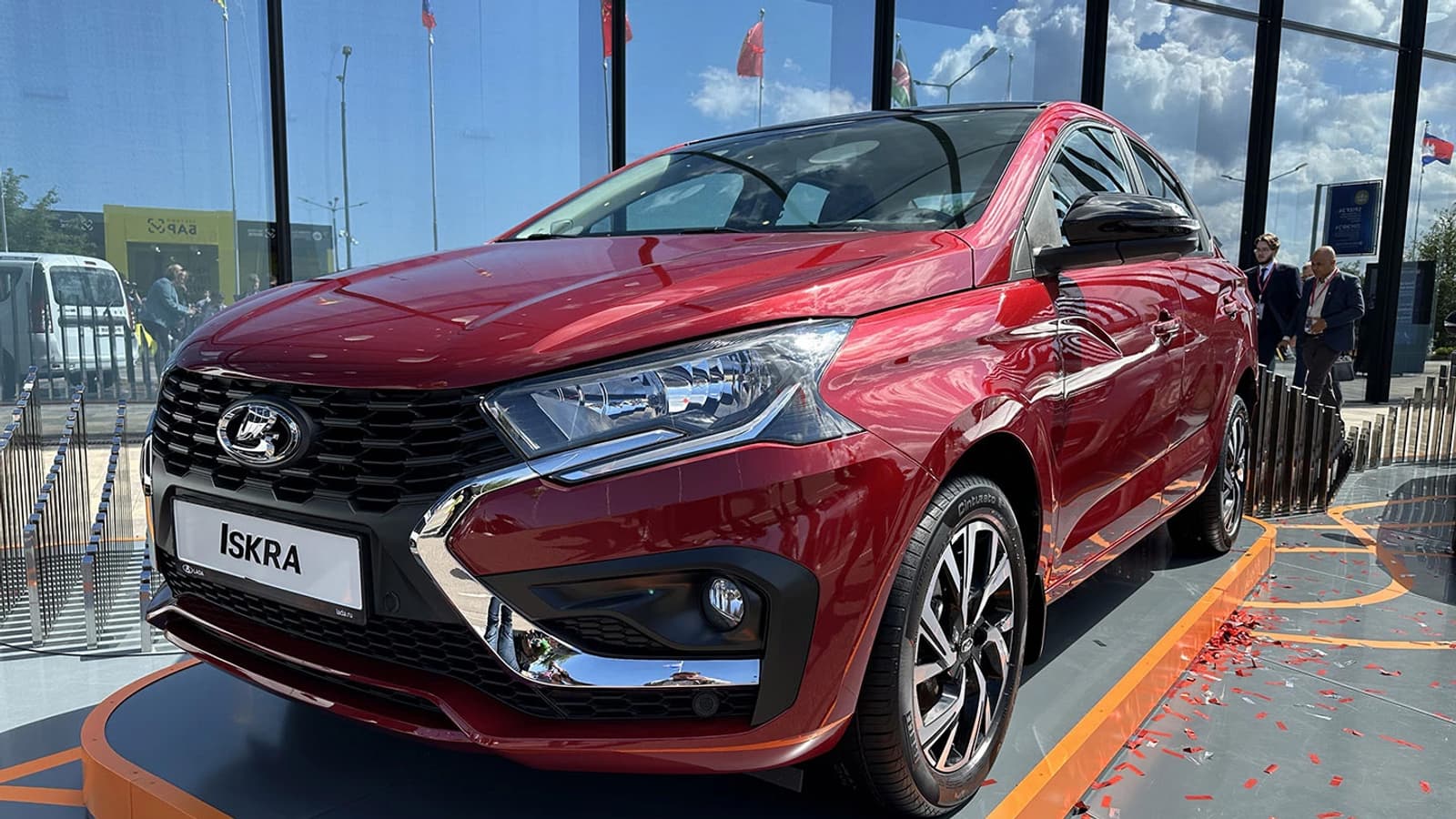 «Очень красивая [машина]», — сказал Владимир Путин, когда подошел к Lada Iskra Cross и заглянул в ее салон.