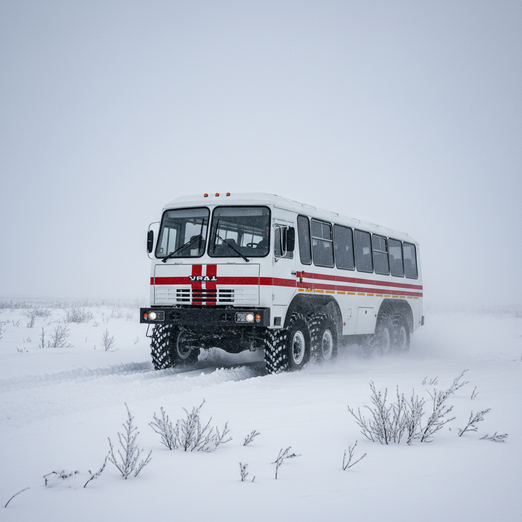 «Арктика» (он же Урал-427701) рассчитан на эксплуатацию в суровых условиях (клиренс — внушительные 60 см) и при температуре до -50 °C (: усиленная теплоизоляция дополнена двойными стёклами и двумя автономными отопителями). В салоне 21 пассажирское кресло, полки и даже туалет.