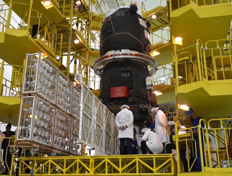 Пресс-служба Роскосмоса сообщила, что проведён следующий этап подготовки к запуску грузового корабля «Прогресс МС-30» — проверка солнечных батарей. Специалисты развернули секции фотоэлементов и провели их облучение мощными светильниками для контроля эффективности преобразования световой энергии в электрическую.