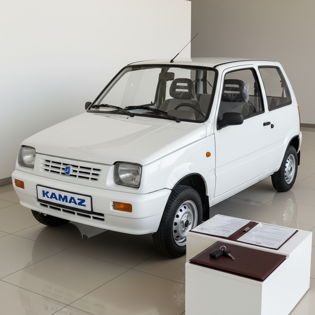 Малолитражка оснащена 749-кубовым двухцилиндровым карбюраторным двигателем мощностью 33 л.с. (50 Н•м), который работает в паре с 4-ступенчатой механической коробкой передач. Комплектация автомобиля стандартная: белый кузов, серый тканевый салон и минимальный набор опций.