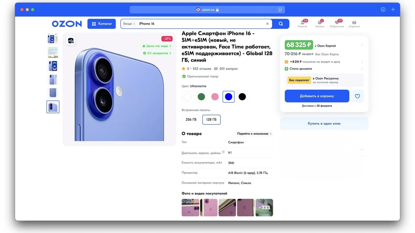 В конце сентября iPhone 16, который оснащен 128 ГБ флеш-памяти, предлагали по цене от 115 тыс. рублей, а сегодня цена опустилась уже до 68 тыс. рублей. Еще в декабре прошлого года смартфон стоил в среднем 85 тыс. рублей.