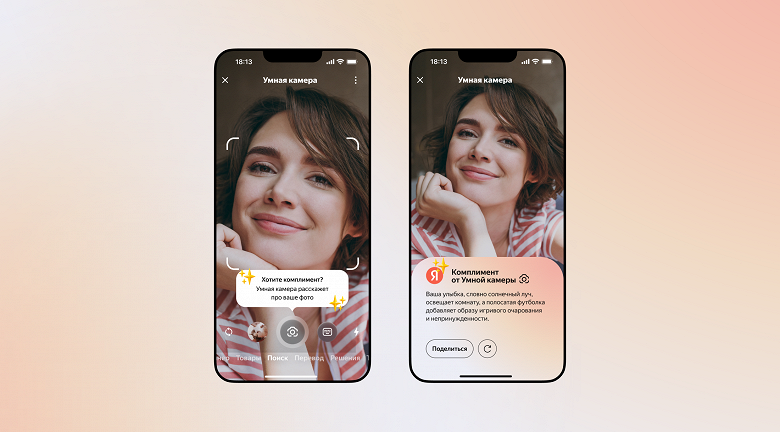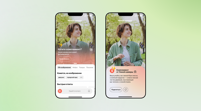 Чтобы умная камера научилась использовать небанальные и поэтичные эпитеты и сравнения, нейросети показали более чем 14 тысяч пар картинок и текстов с приятными словами. Скоро возможность получить комплимент от умной камеры появится также в мобильном приложении «Яндекс Браузер» для iOS и Android.