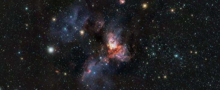 Европейская южная обсерватория (ESO) опубликовала 80-миллионнопиксельное изображение звёздного скопления RCW 38, полученное с помощью телескопа VISTA, работающего в пустыне Атакама в Чили. Это изображение представляет звёздную колыбель RCW 38, расположенную на расстоянии около 5500 световых лет от Земли в созвездии Паруса.