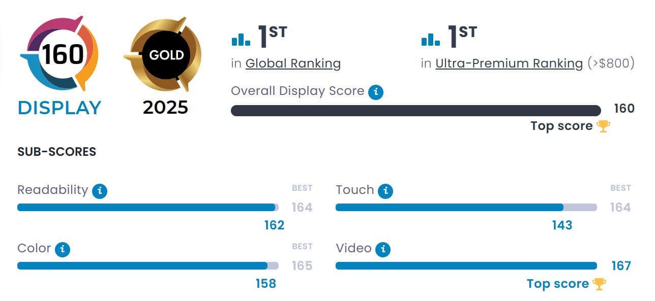 Специалисты DxOMark хвалят экран Galaxy S25 Ultra за отличную читаемость на улице днем за счет высокой пиковой яркости и очень эффективного антибликового покрытия, за хорошее качество видео при слабом освещении и в помещениях. К недостаткам относят слишком высокую яркость при использовании смартфона в помещении или в условиях слабого освещения, а также непроизвольные срабатывания сенсорного экрана.