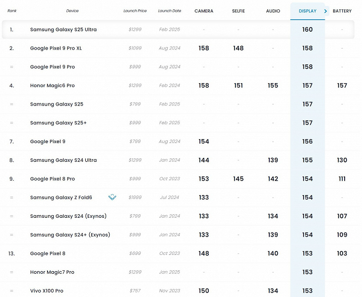 Специалисты вовсю тестируют новейший флагман Samsung Galaxy S25 Ultra, и уже есть первый результат: в тестах экрана эта модель заняла первое место. По результатам тестов экрана Galaxy S25 Ultra получил 160 баллов — на 2 балла больше прошлых лидеров рейтинга Google Pixel 9 Pro XL и Google Pixel 9 Pro.