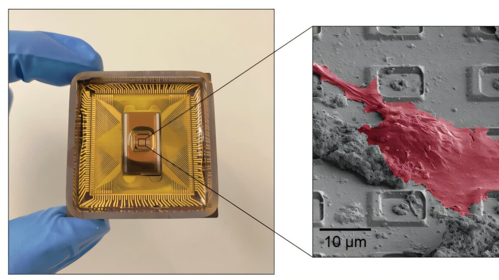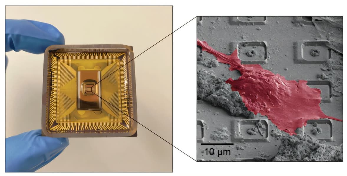 Новая разработка основана на предыдущем достижении команды 2020 года – массиве из 4 096 вертикальных наноигольчатых электродов, выступающих из кремниевого чипа. В том устройстве нейрон мог обернуться вокруг иглы, что позволяло проводить внутриклеточную запись, распараллеленную благодаря большому количеству электродов. Однако тогда удавалось извлечь информацию лишь о 300 синаптических соединениях.