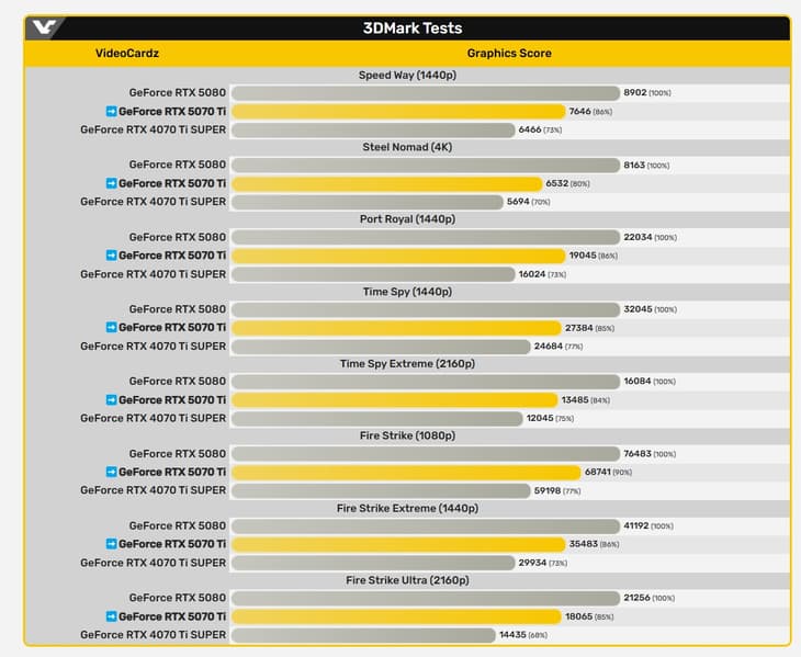 GeForce RTX 5070 Ti точно не будет заметно быстрее RTX 4070 Ti Super. Это теперь подтверждают и тесты в 3DMark.