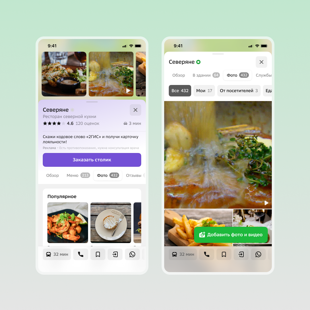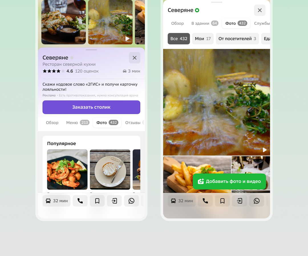 По данным различных исследований, видеоконтент привлекает значительно больше внимания, чем фото. Видео в карточках 2ГИС поможет пользователю больше узнать о месте, составить полное впечатление о компании или услуге и быстрее сделать свой выбор.