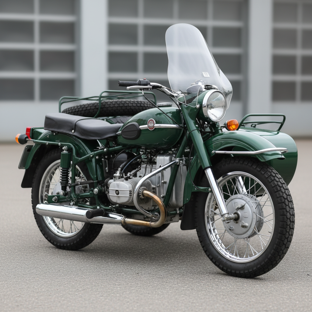 Данная модификация «Урал» оснащена рычажной передней вилкой, ветровым щитком, защитной дугой с левой стороны, дисками с алюминиевой ступицей с одинаковыми спицами, багажником над запасным колесом.