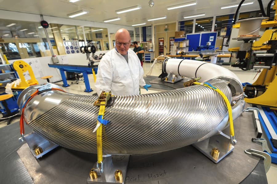 Концепция наклонного косинус-тета (CCT) разрабатывается в ЦЕРНе с 2014 года и уже используется в проекте High-Luminosity LHC. Текущий проект по созданию изогнутого CCT-демонстратора занял около двух с половиной лет. Недавно был завершён процесс намотки кабелей на формер, и теперь, когда осталось выполнить лишь несколько заключительных этапов, фаза строительства подходит к концу. Первые полномасштабные испытания нового магнита запланированы на апрель. После серии предварительных оценок эти тесты позволят сравнить характеристики магнита с результатами симуляций и определить дальнейшие шаги в процессе разработки.