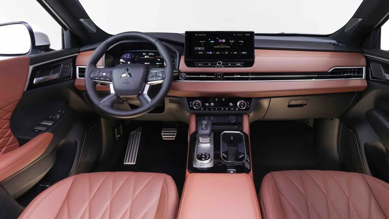 Обновлённый Outlander получил доработанную систему гидроусилителя руля, другие настройки пружин, амортизаторов и стабилизаторов. В салоне использованы премиальные материалы — от полуанилиновой кожи в оттенке Brick Brown до светло-серой синтетической кожи с замшевыми вставками. Впервые для данной модели появились и вентилируемые сиденья.