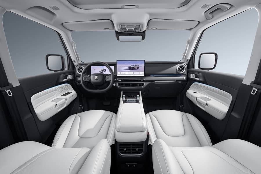 Среди новых оттенков выделяется пустынно-желтый вариант кузова, а салон теперь выполнен в контрастных красно-черных тонах. На передней панели появился центральный экран управления диагональю 14,6 дюйма.
