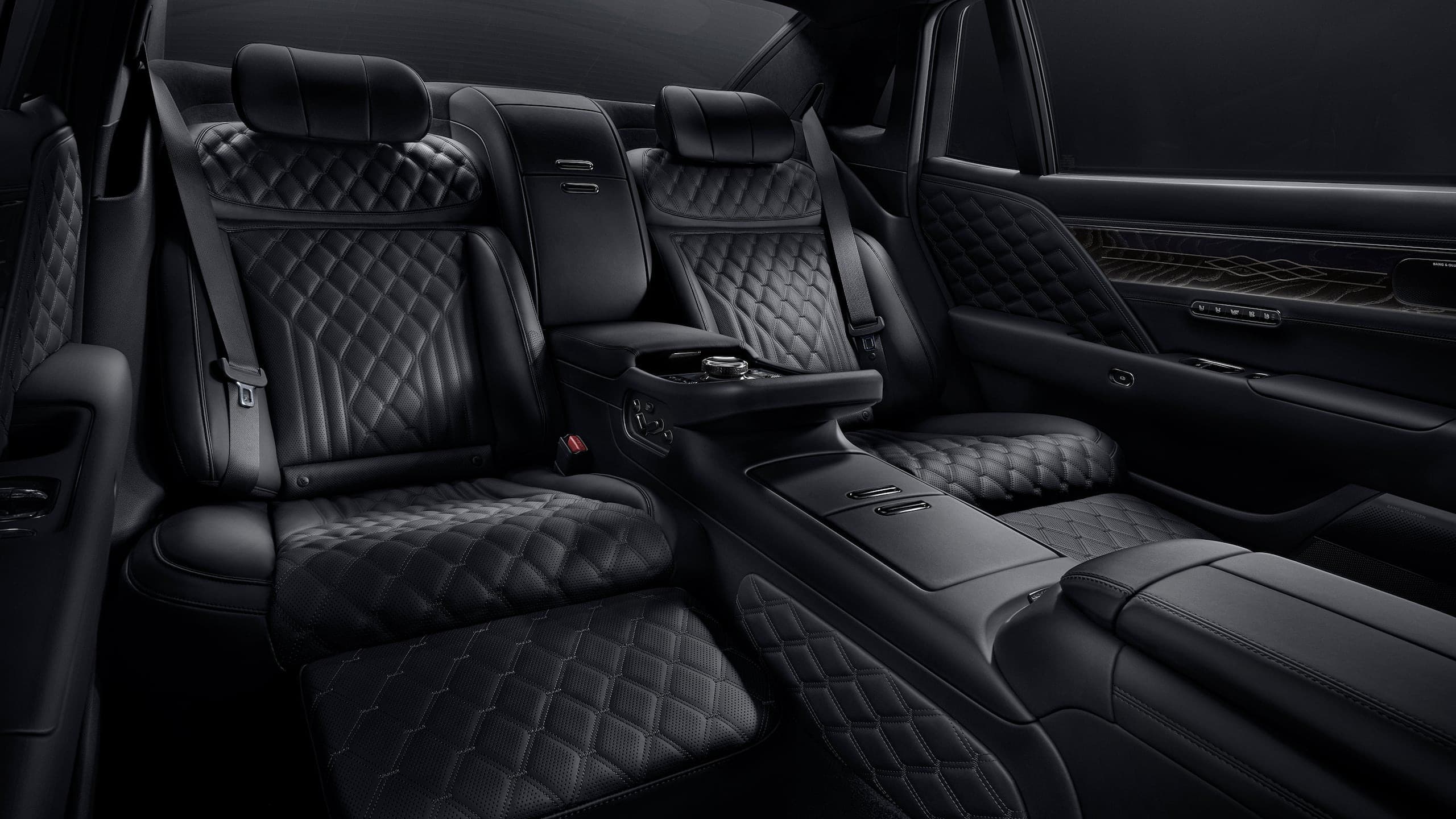 Модель G90 Long Wheelbase Black 2025 года оснащена проекционным дисплеем и использует новую развлекательную систему для пассажиров на задних сиденьях. Разрешение экранов и диагональ были увеличены.