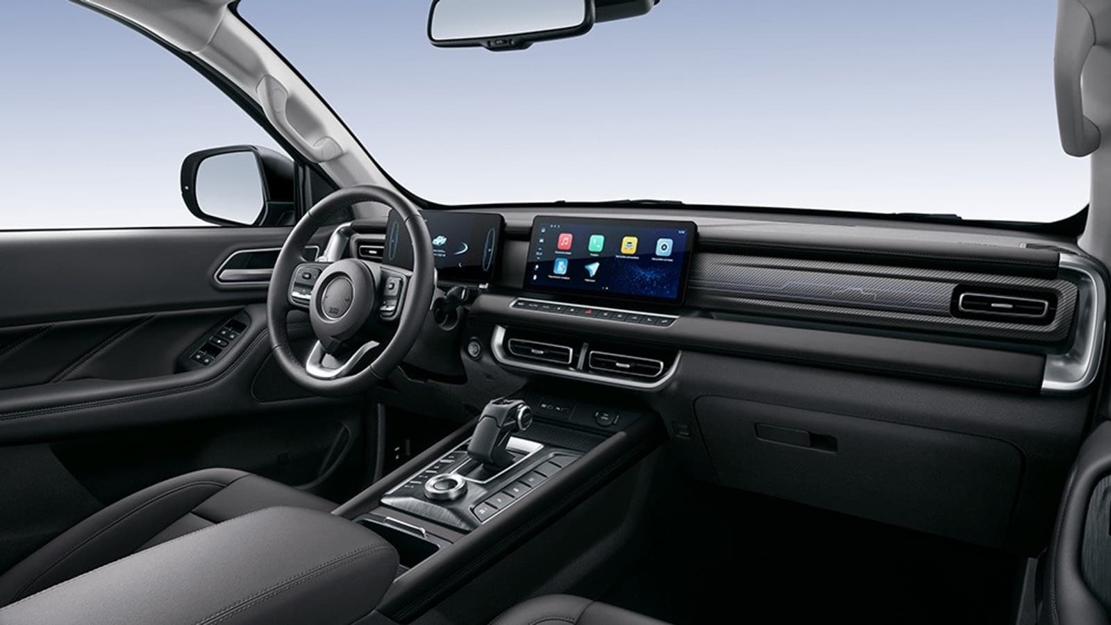 Интерьер автомобиля выполнен с использованием искусственной кожи, руль регулируется по наклону и вылету. В оснащение входят климат-контроль, обогрев передних сидений, рулевого колеса, боковых зеркал, зоны покоя стеклоочистителей, а также аудиосистема с шестью динамиками. Приборная панель цифровая, с 7-дюймовым дисплеем, мультимедийная система представлена 12,3-дюймовым экраном. Также предусмотрены круиз-контроль, две подушки безопасности и камера заднего вида.